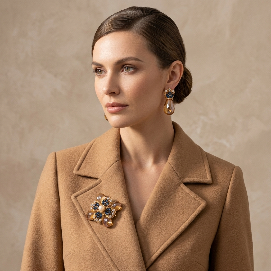 Brooch and clip-on earrings